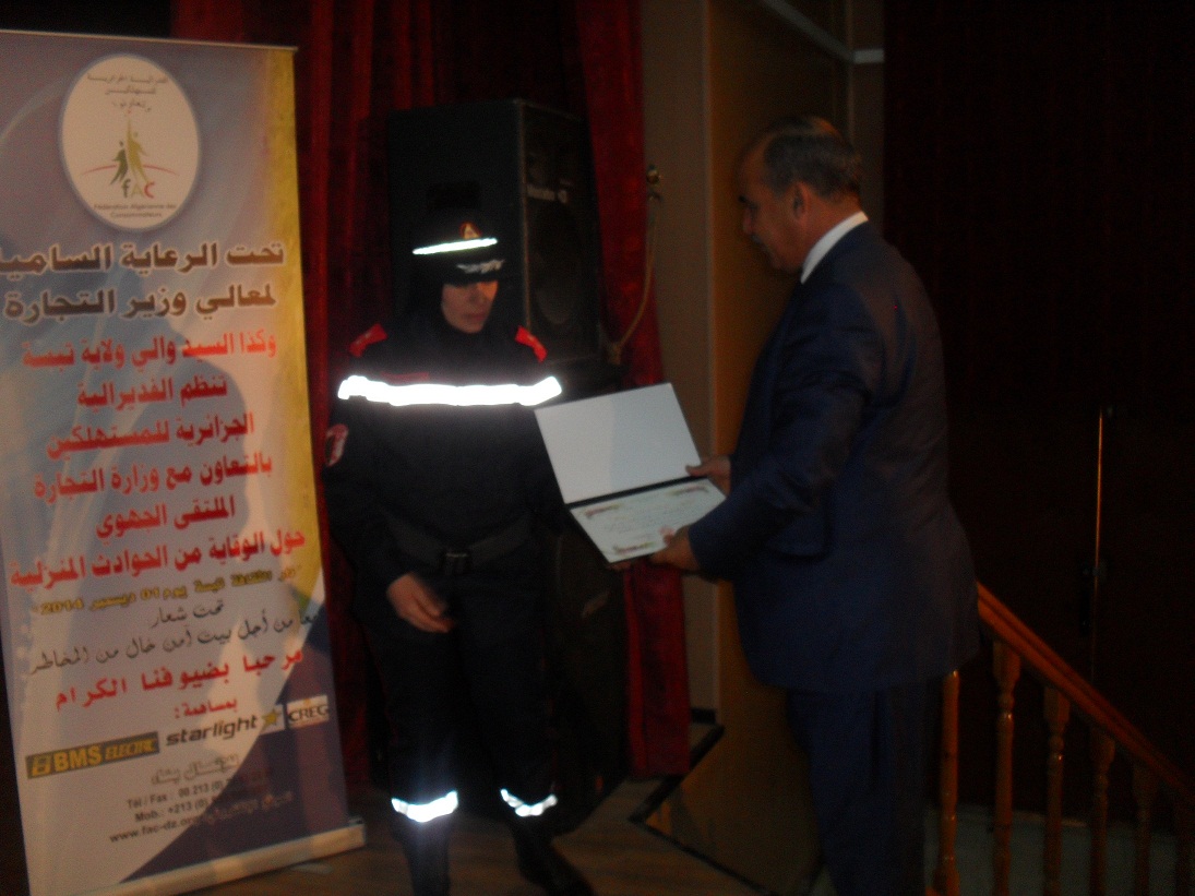 تحت الرعاية السامية لمعالي وزير التجارة وكذا السيد والي ولاية تبسة، والمنظم من طرف الفيدرالية الجزائرية للمستهلكين بالتعاون مع مديرية التجارة لولاية تبسة يـوم 01 ديـسـمـبـر 2014 بــدار الـثـقــافــة :مـديـنـة تـبـسـة.